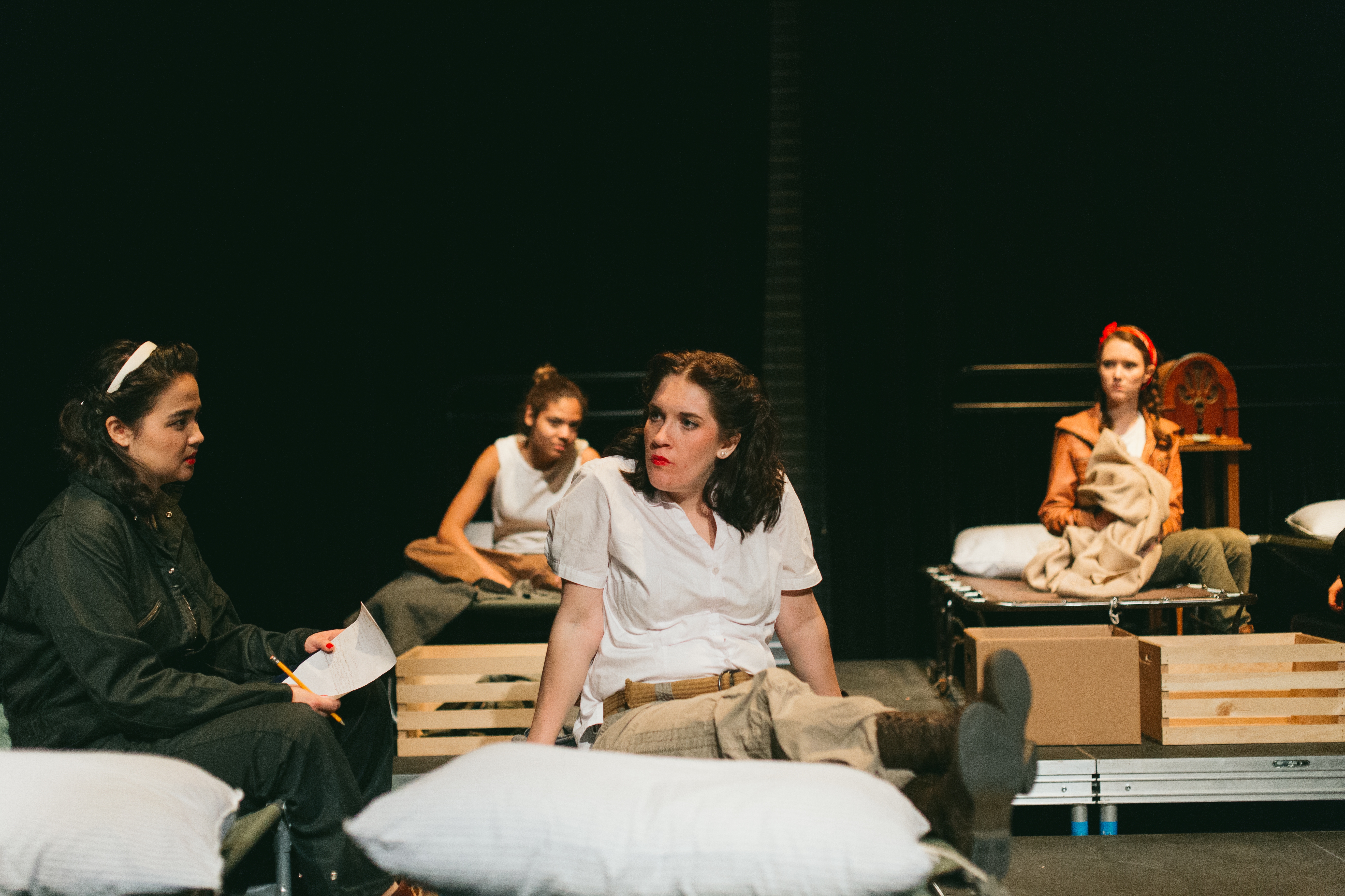 “I think the play is important to see because it gives us a glimpse into the life of women during WWII,” said Hart. “Women were still considered inferior to men, and ‘Decision Height’ shows the struggle between trying to fit into the cultural norms and trying to be independent, and, in some cases, trying to draw a compromise between the two. Each woman in the show has her own story and her own reason for wanting to fly. Similarly, each had a reason to stay home as well. Watching the conflict inside each woman throughout the play has been the most intriguing aspect for me.”