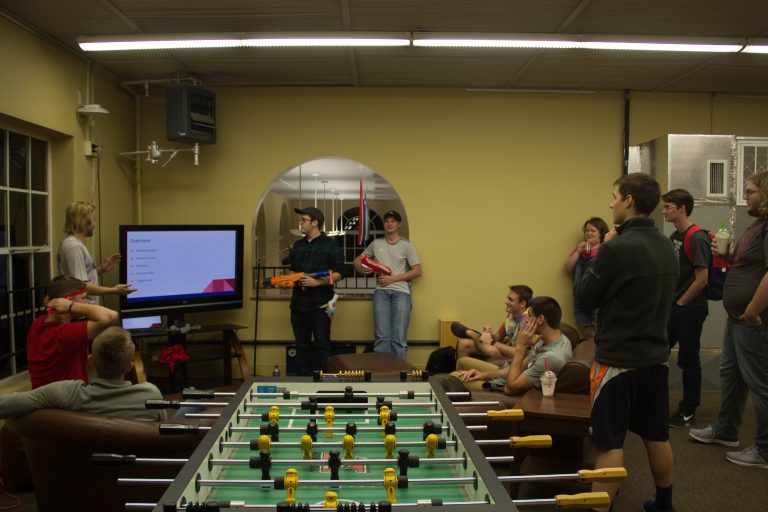 Taggers vs. Survivors is a campus-wide game of tag, but players can defend themselves with Nerf guns to keep from being tagged and wear bandanas to indicate their playing status. The goal is to either remain untagged for as long as possible or to tag as many people as possible, depending on a player’s designation at the start of the multiple-day event. Each day there is a mission for participants to complete, until the final mission on Thursday evening. In the last few years, there have been no Survivors left by the end of the week.