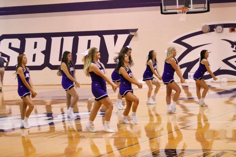 “The Asbury cheer girls have gotten so much better with their stunting and motions. They no longer look messy but sharp. They also have done a good job at getting the crowd engaged,” says Coach Moberley.