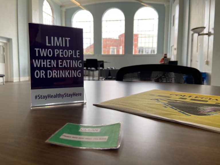This year there are some big changes: not only is the STUCE renovated, complete with new paint and new furniture, but COVID-19 precautions are in place to keep the area safe and clean. Tables are spaced out with labels reading whether they are “clean” or “dirty.” Plexiglass surrounds the HICCUP café, encasing its baristas. Masks are to be worn at all times. For the duration of the shorter in-person fall semester, the HICCUP faces the uncharted and challenging territory of continuing in the era of social distancing.