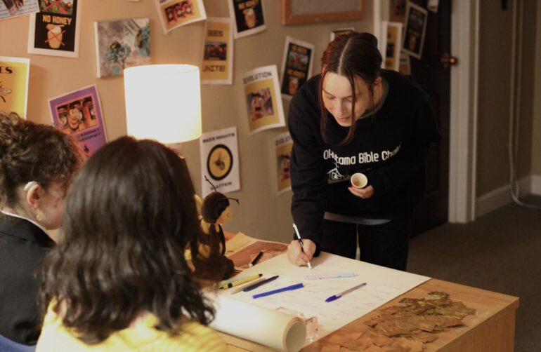 After all the Barbie dolls enthusiastically bid farewell with a cheerful “Bye, Barbie!” visitors were whisked away through golden streamers and into the world of “Bee Movie.” Attendees were given a golden spoon with pollen to keep safe until the end of their journey. Guests faced bee-sized challenges, dodging tennis balls, navigating a handmade giant shoe and evading a makeshift fly swatter made from rolled-up newspaper. Before leaving, everyone was encouraged to sign a petition for proper wages and better representation for bees. Stay tuned for updates on the bees’ journey toward justice.