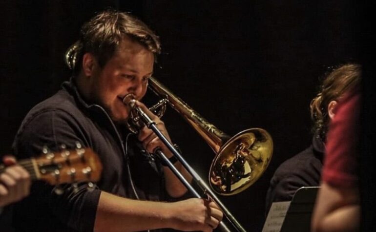 Robertson has been interested in music since he was little. He states, “I’ve been playing since the sixth grade, the trombone at least, but I grew up in the Salvation Army, and we all started playing at a very young age. My mentor Nick has made me want to establish myself more, and I think that’s what kept me going.” Asbury has been a huge factor in achieving his goals and in giving him opportunities.