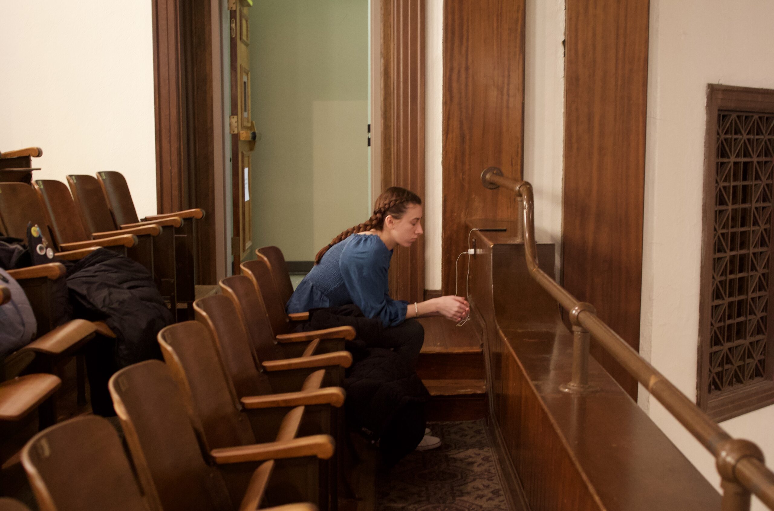 I sit in the back row of the Hughes balcony. My legs are starting to ache from stiffly sitting in...