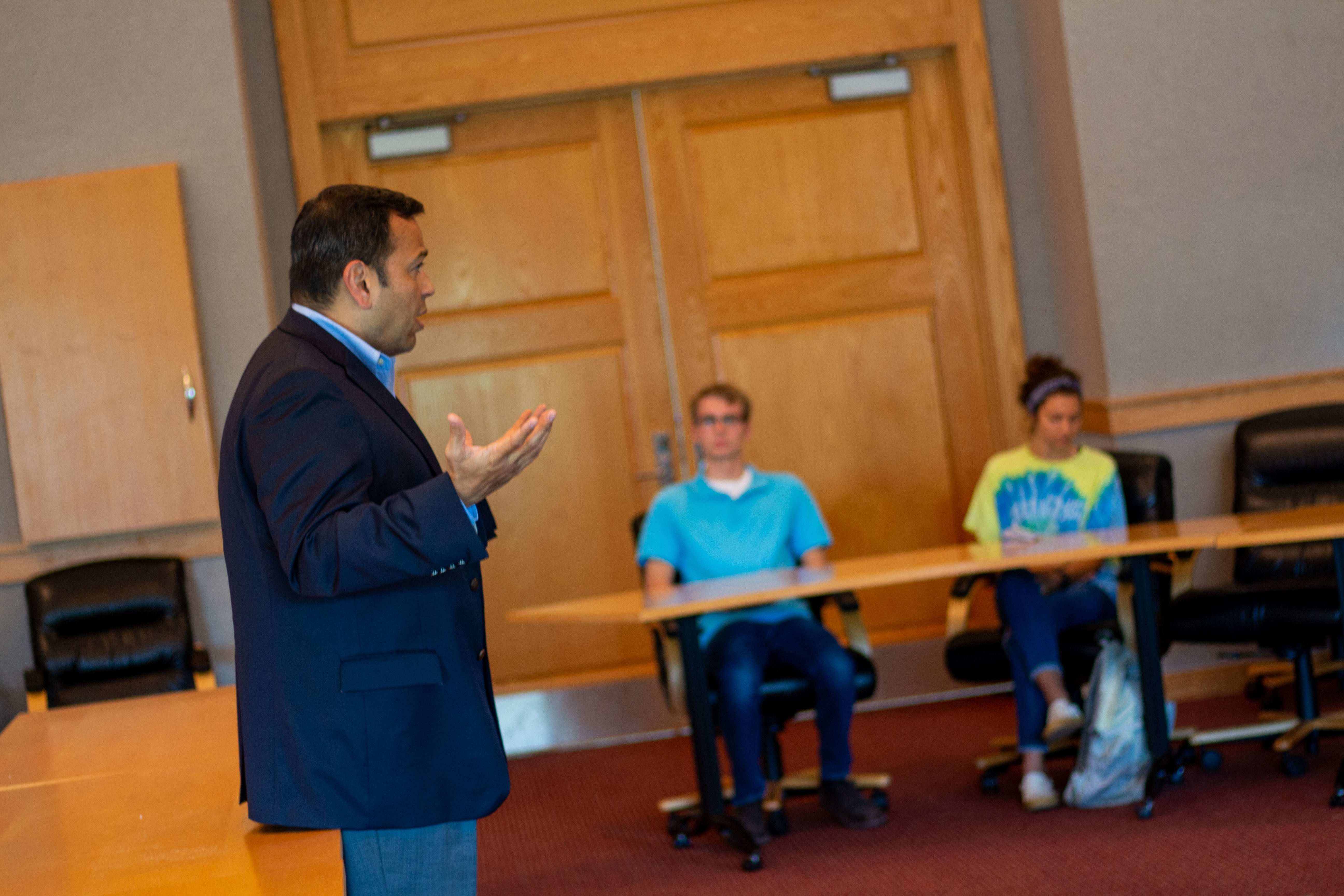 Kentucky State Senator Ralph Alvarado shook hands with Asbury students as he prepared to answer their questions in the Kinlaw...