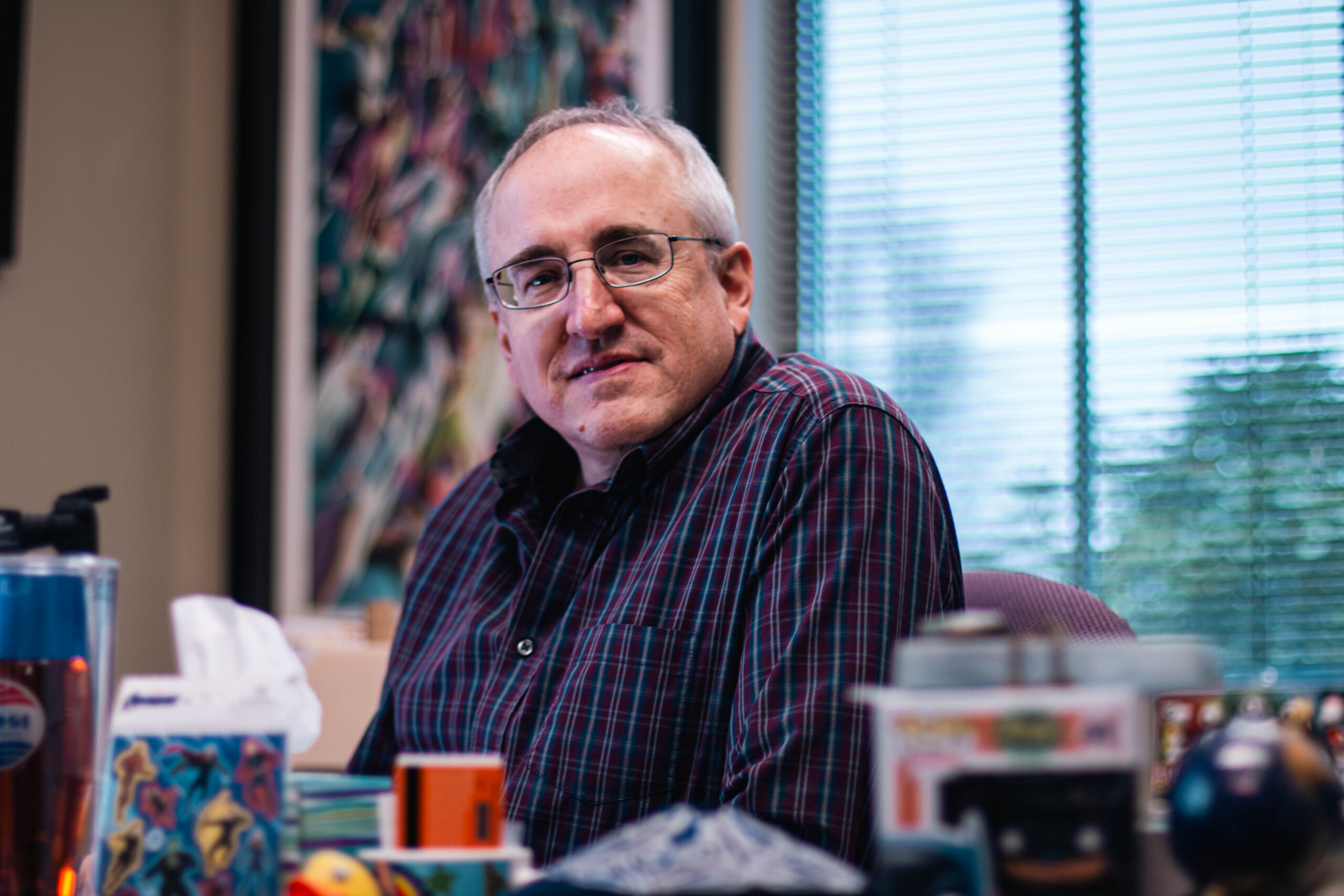 Nestled next to the stairs and cozy sitting nook on the second floor of the Communications Building, you can find Professor Sean Gaffney’s door, which will most likely be open for students to pop in for a quick visit and a snack before class. Most of us know of his Veggie Tales past; however, his career and life extend far beyond his movie for the iconic franchise.